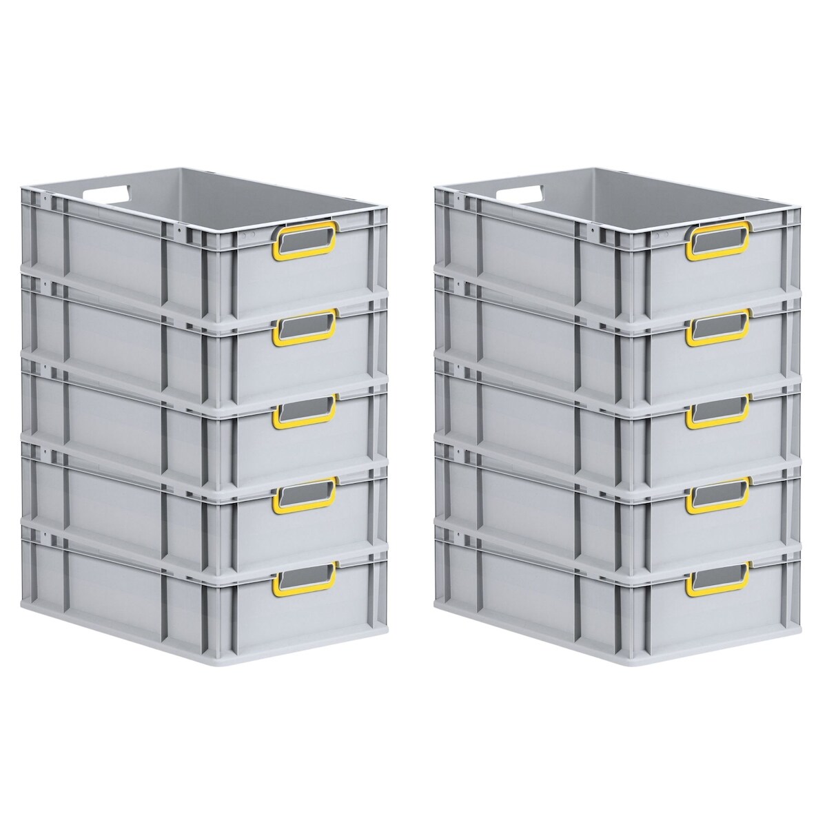 PROREGAL 10x Eurobox NextGen Color | HxBxT 17x40x60cm | 34 Liter | Griffe gelb offen | Glatter Boden | Eurobehälter