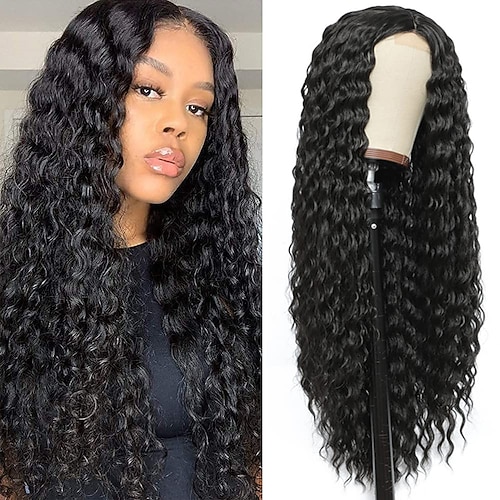 parrucca riccia lunga da donna parrucche brune naturali parte centrale parrucche sintetiche resistenti al calore per feste di natale