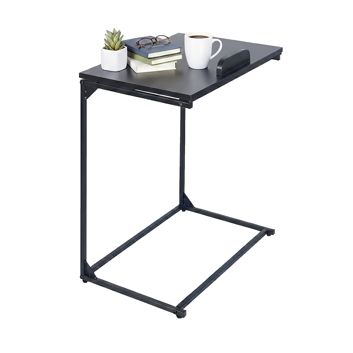 Relaxdays Beistelltisch, C-Form, neigbare Tischplatte, HBT: 66 x 55 x 35 cm, Laptoptisch mit Anti-Rutsch-Leiste, schwarz