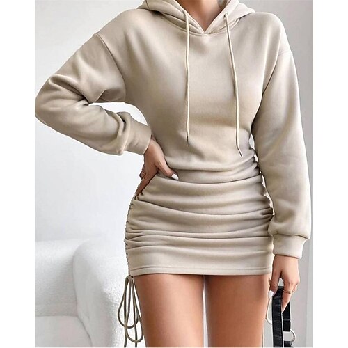 Per donna Mini Abito Abito con Cappuccio Vestito Casual Attillato Moda Moderno All'aperto Quotidiano Weekend Vestibilità regolare Semplice Manica Lunga Con Cappuccio Nero Albicocca Grigio Primavera