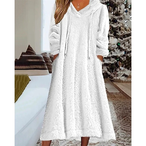 Per donna Abito Midi Vestito Casual Abito Invernale Moda Moderno Quotidiano Weekend Vestibilità regolare Semplice Manica Lunga Con Cappuccio Bianco Inverno Autunno