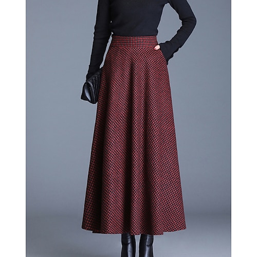 Per donna Gonna Svasato Moda Midi Vita media Gonne Plaid Arricciato Micro-elastico Streetwear Quotidiano Vinaccia Grigio scuro Cachi Grigio chiaro Autunno Acrilico