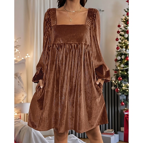 Per donna Mini Abito Abito in Velluto Vestito da Festa Elegante Moderno Festa serale Feste Cocktail party Vestibilità regolare Semplice Manica Lunga Girocollo Vino Verde scuro Marrone Primavera