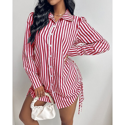Per donna Mini Abito Abito Camicia Vestito Casual Elegante Moda Moderno Quotidiano Ufficio Ferie Vestibilità regolare A righe Manica Lunga Colletto a Camicia Nero Rosso Viola Verde Primavera Autunno