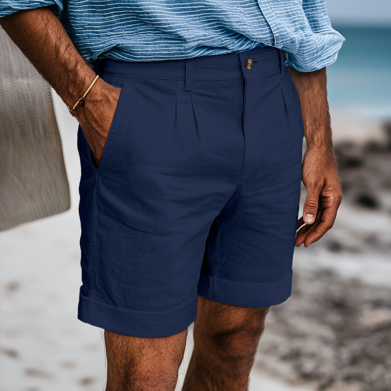 Men's Shorts Linen Shorts Dress Shorts Summer Shorts Pleated Shorts Pocket Buttons Pleats Plain Comfort Breathable Short Casual Daily Holiday Fashion Designer Black White