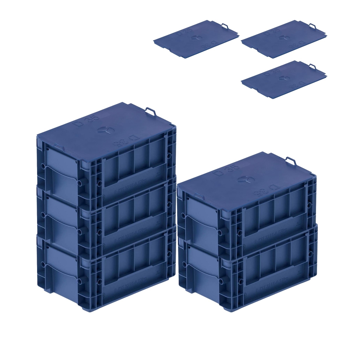 PROREGAL 5x VDA KLT Kleinladungsträger mit Verbundboden & Auflagedeckel | HxBxT 14,7x20x30cm | 5,3 Liter | KLT