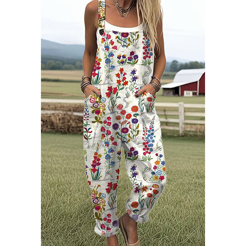 Women's Dungarees Active Floral Sleeveless Sleeveless Straight Square Neck Pocket with Pocket Vacation Daily Loose Fit White Pink Green Summer