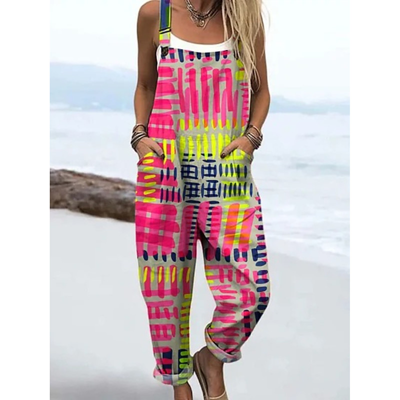 Women's Dungarees Active Floral Sleeveless Sleeveless Straight Square Neck Pocket with Pocket Vacation Daily Loose Fit Pink Purple Khaki Summer