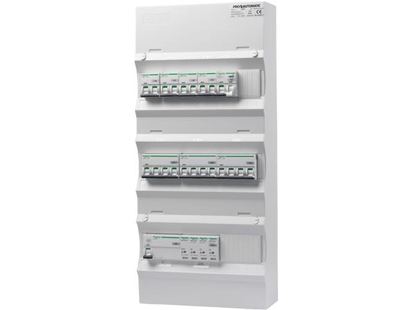 PRO-AUTOMATIC Gruppe schalttafelfertig montiert UG18 Weißer RCD, 40A 30mA, 4xC10 1P+N, 1xC10/30mA, 1P+N 2xC13 3P+N, 1xC16 3P+N, 1xTransient