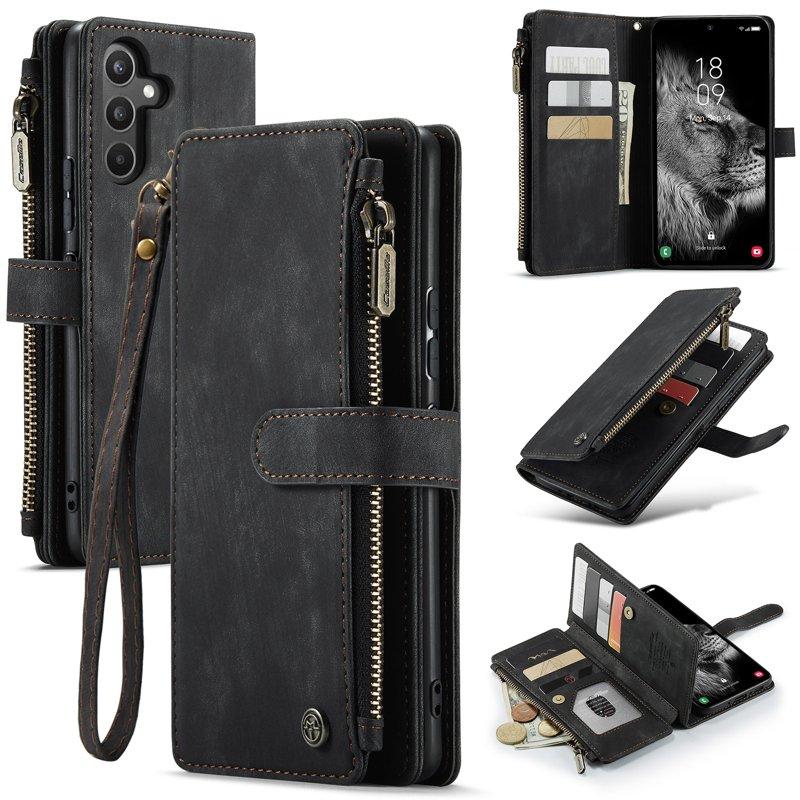 CASEME Konstläder Plånboksfodral för Samsung Galaxy A34 5G med rem - Svart