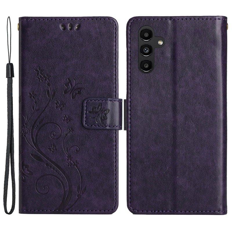 Samsung Galaxy A35 5G Fodral Äkta Läder Fjärilsdesign - Mörklila