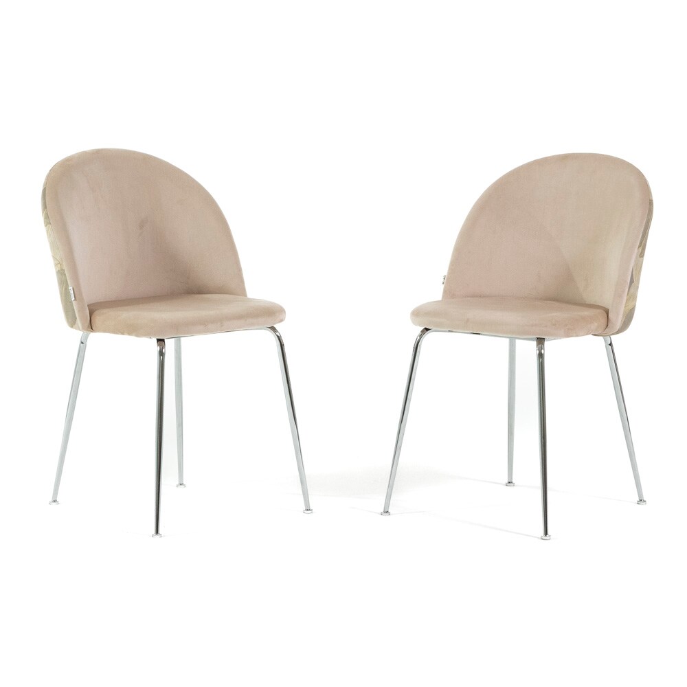 RATTATAN Set aus 2 Innenstühlen aus dekorativem Samt mit Metallbeinen, elegantes Design für Küche, Esszimmer, Bar und Restaurant – Sara – Creme/Silber