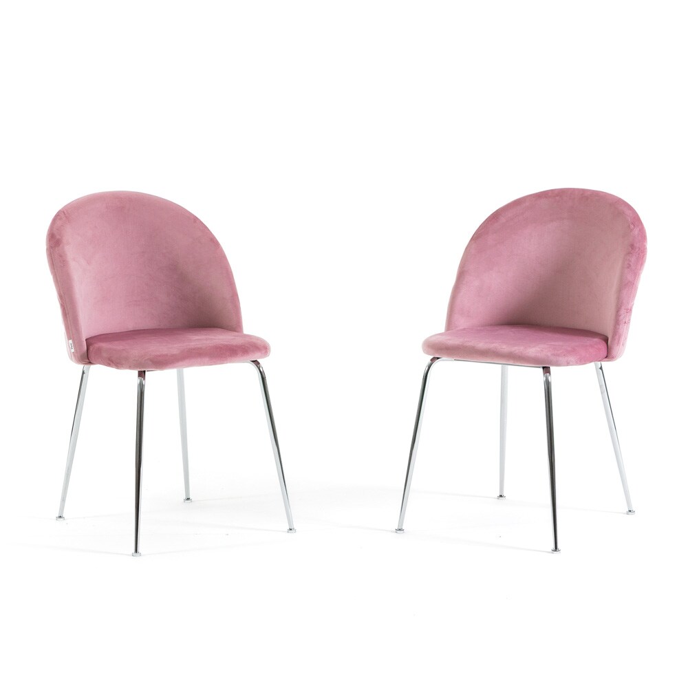 RATTATAN Set aus 2 Innenstühlen aus Samt, gepolstert, mit Metallbeinen, elegantes Design für Esszimmer, Bar und Restaurant – Sara – Rosa/Silber