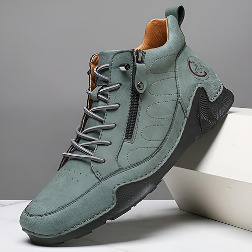 scarpe da trekking da uomo in similpelle verde con cerniera - comode scarpe da esterno per escursioni e viaggi