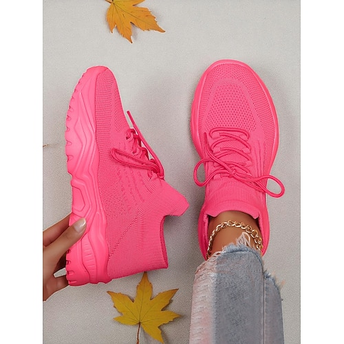 sneakers da donna rosse Flyknit con suola spessa: scarpe sportive traspiranti con lacci per abbigliamento casual da strada e allenamento in palestra