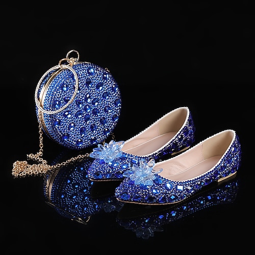 set di scarpe basse di lusso impreziosite da strass e pochette abbinata per donna - rosso e blu