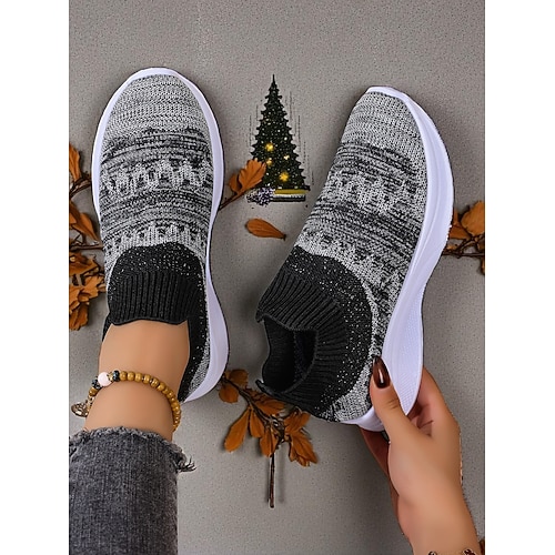 scarpe da ginnastica da donna in maglia rossa e verde: scarpe da corsa leggere e traspiranti, slip-on, per sport, passeggiate, feste di Natale e outfit casual
