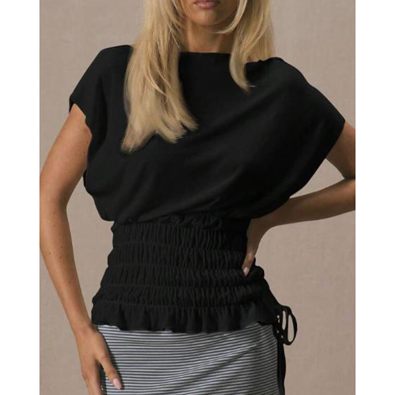 Women's T Shirt Plain Elegant Fashion Classic Short Sleeve Crew Neck Regular Tops Daily Going out Weekend Tunic Elastic Waist Black White Gray Summer Spring