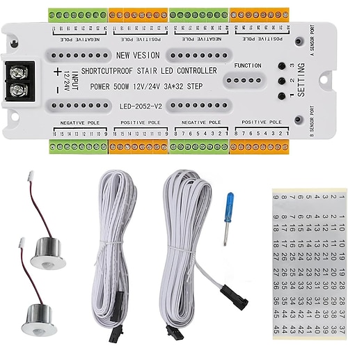 Controller per scale a LED con sensore di movimento a 32 canali, controller automatico per illuminazione scale, a prova di cortocircuito, controller per luci gradini scale, luminosità regolabile per