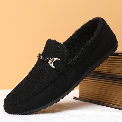 scarpe slip-on marroni da uomo con fodera in pelliccia: scarpe calde e comode per il freddo, abbigliamento casual e comfort