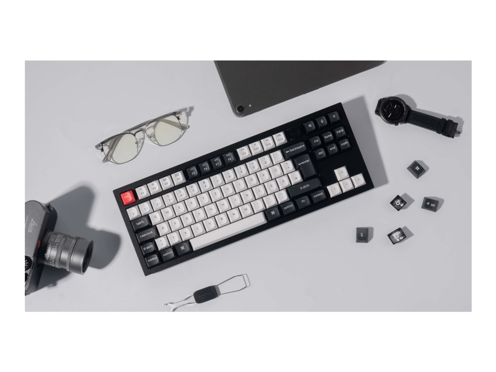 Keychron K5 QMK, Ledning & Trådløs, USB + Bluetooth, Mekanisk nøkkelbryter, QZERTY, LED, Sort