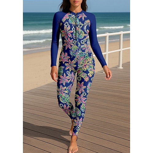 Per donna Top sottomuta Costumi da bagno interi Muta da sub Floreale UPF50 Asciugatura Rapida Alta elasticità Manica Lunga Costume da Bagno Cerniera Frontale Surf Immersione Snorkeling Estate