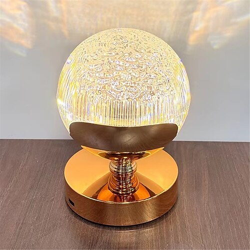 Lampada da tavolo con sfera in cristallo acrilico dimmerabile a tre colori con ricarica USB, per hotel, bar, decorazione creativa, luce notturna, lampada da tavolo per camera da letto, comodino,