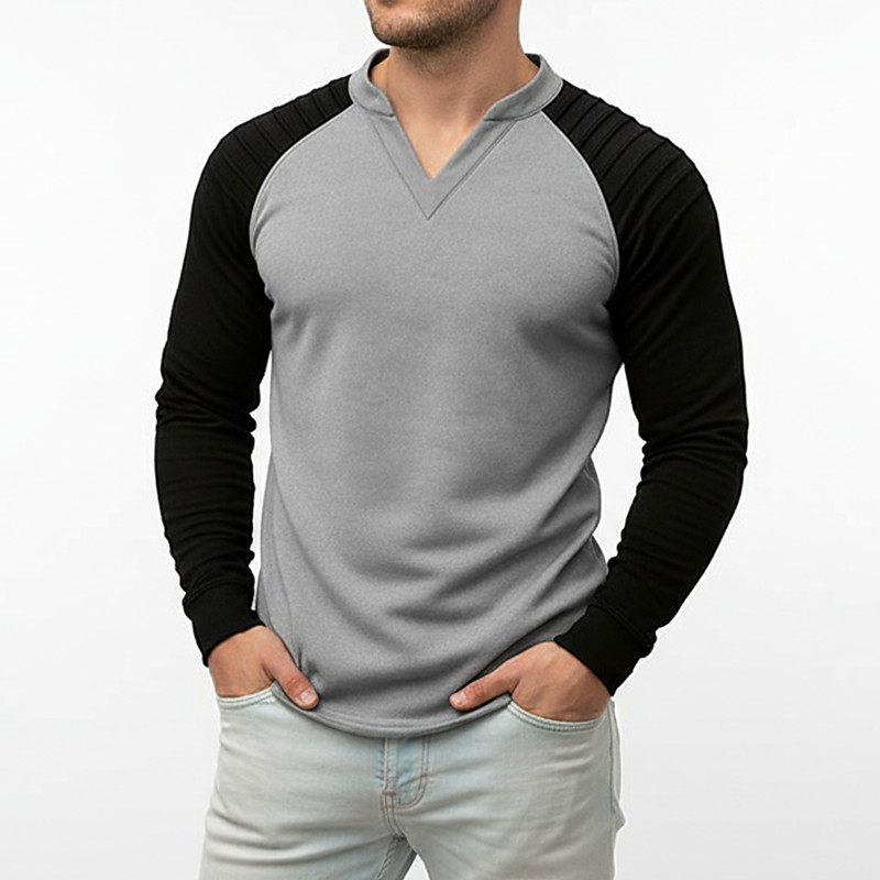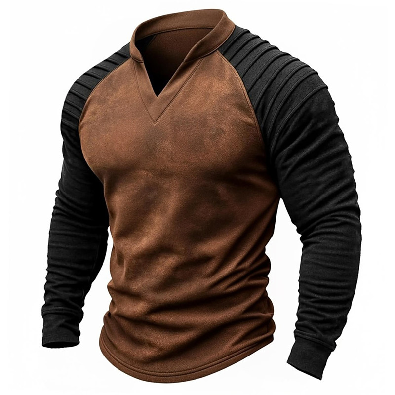 Men's Faux Suede Tee Top Long Sleeve Shirt V Neck Wrinkle Design Pleat Tops Fall Winter Color Block Vintage Daily Retro Ruched Color Block Outdoor Street Causal Blue Brown khaki T-shirt
