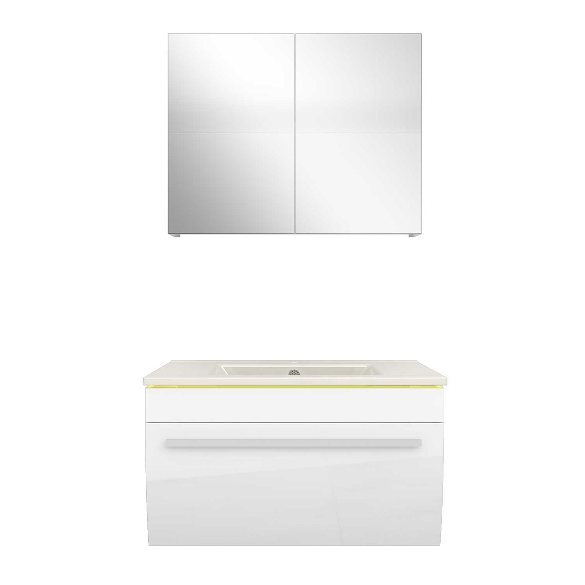 AcquaVapore Badmöbel Set Gently 3 V1 Weiß MDF Waschtisch 70cm mit 1x 5W LED-Strahler