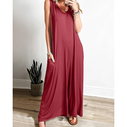 Per donna Normale Tuta Attivo Tinta unica Senza Maniche Gamba larga Scollo a V Tasca Quotidiano Vacanza Vestibilità comoda Nero Vino Verde militare Estate