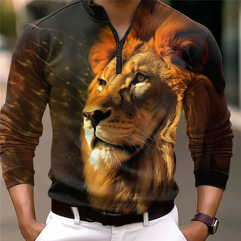 Men's Lion Zip Polo Long Sleeve Polo Shirts Zip Abstract Outdoor Casual Daily Streetwear 3D Print Fall Winter Blue Orange Green