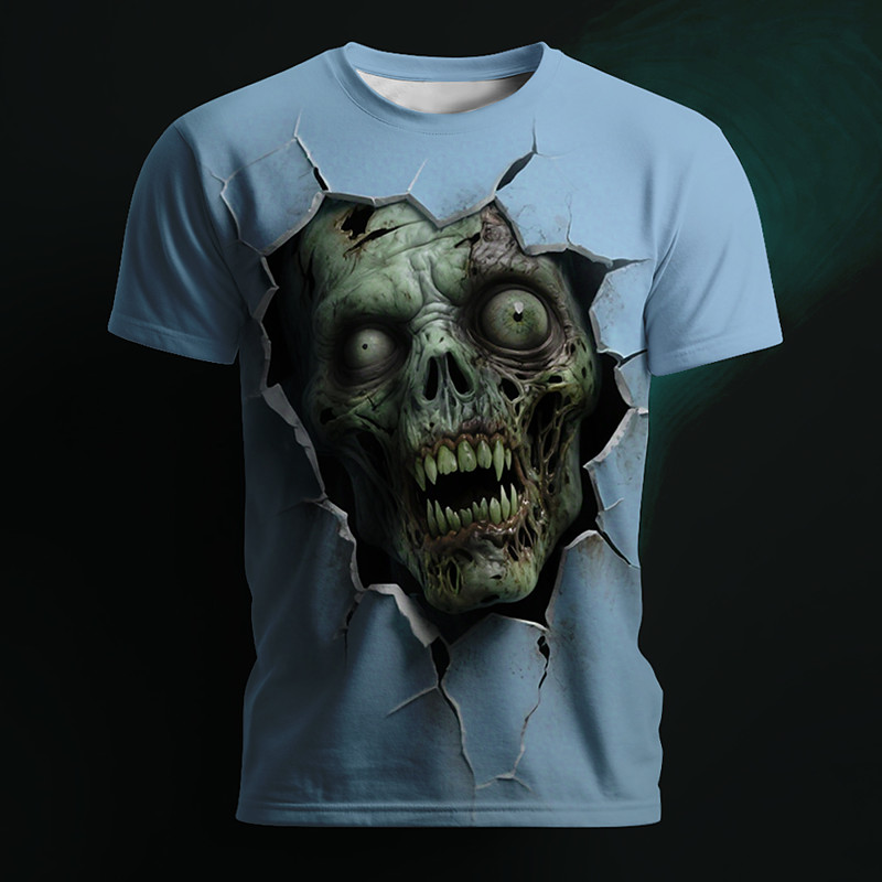 Halloween Men's Optical Illusion Zombies 3D T Shirt Short Sleeve T shirt 3D Print Crew Neck Shirt Exaggerated Designer Horror Party Street Holiday Green 1# Green 2# Blue Summer Spring All Seasons