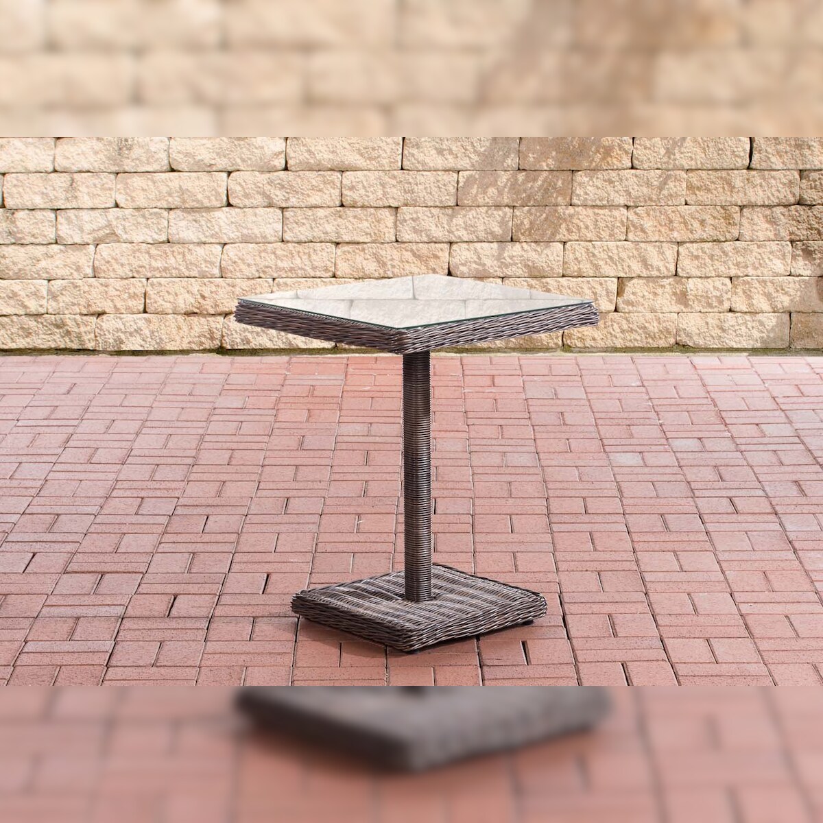 Dmora Tisch im Freien Marte, Fester quadratischer Tisch, Mehrzweck-Gartentisch in Rattan-Optik, 100% Made in Italy, 80x80h74 cm, Anthrazit