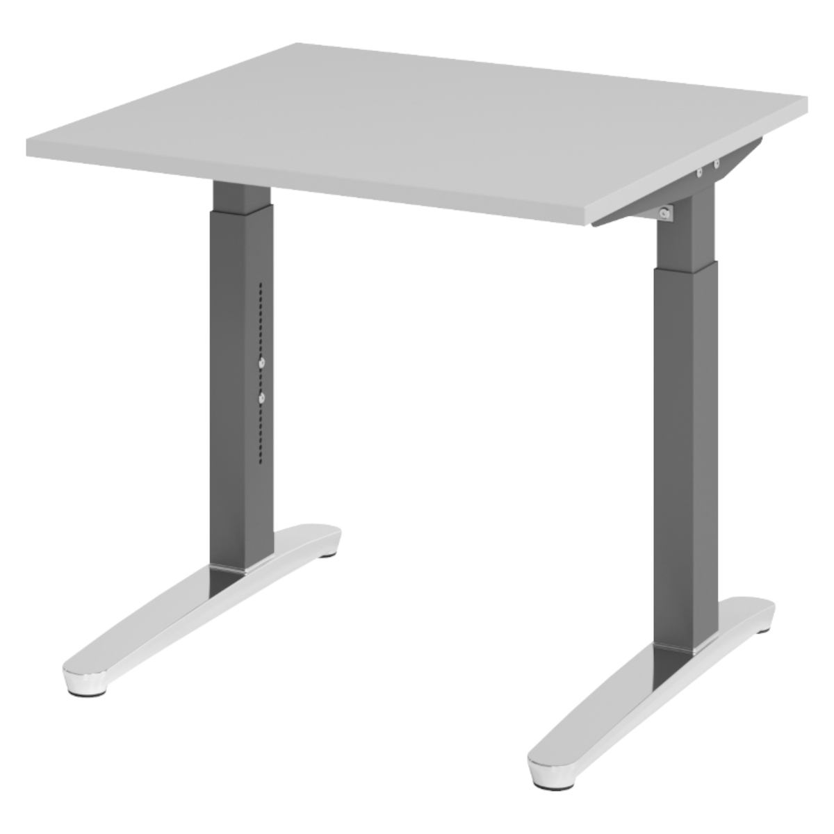 bümö manuell höhenverstellbarer Schreibtisch 80x80 in grau, Gestell in graphit/alu - PC Tisch höhenverstellbar & klein, höhenverstellbarer Tisch