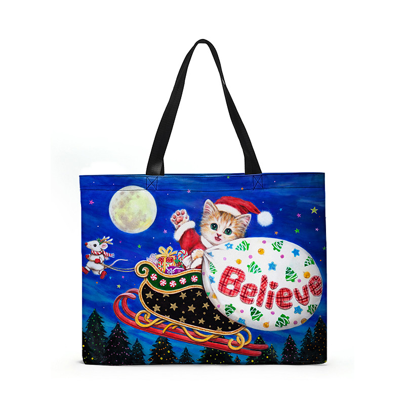 Women's Christmas Tote Bag – Featuring Kayomi Harai's Festive Cat Design, Vibrant Colors, Adjustable Shoulder Straps, Perfect for Holiday Shopping, Gifts and Winter Outings