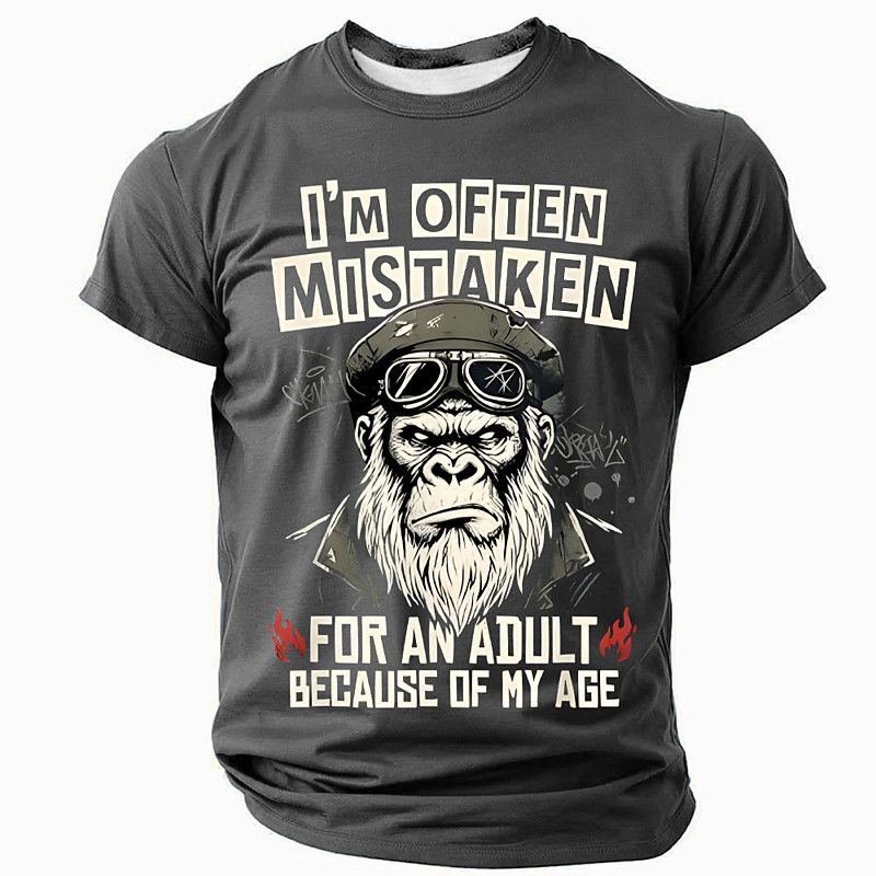 Im Often Mistaken For An Adult Because Of My Age Funny Gorilla Men Black Short Sleeve T Shirt Sarcastic Graphic Tee Clothing Apparel S M L XL XXL XXXL