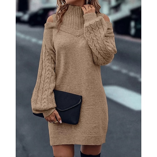 Per donna Mini Abito Abito in maglia Elegante Moda Moderno Quotidiano Ufficio Ferie Vestibilità regolare Semplice Manica Lunga Collo Alto Nero Verde Cachi Grigio Autunno Inverno
