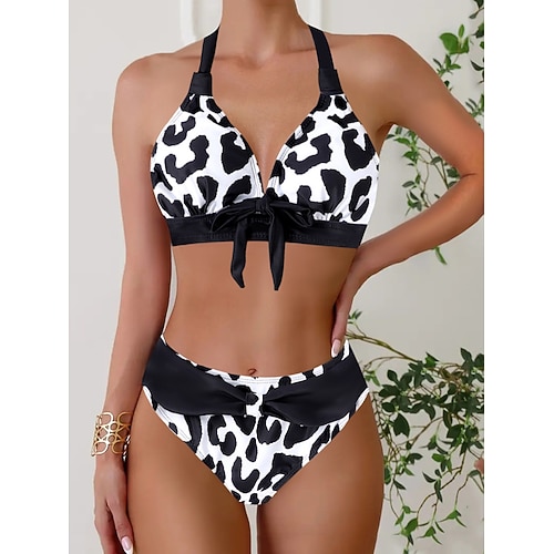 Costume da bagno bikini da donna a 2 pezzi con controllo della pancia alto e schiena scoperta per vacanze al mare colletto a halter e senza maniche