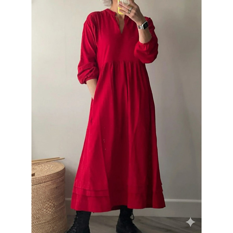 Women's Cotton Linen Maxi Dress Shift Dress A Line Dress Fit And Flare Dress Vacation Casual Boho Party Daily Loose Fit Plain Long Sleeve V Neck Blue Dark Brown Black Red Summer Spring Fall Winter