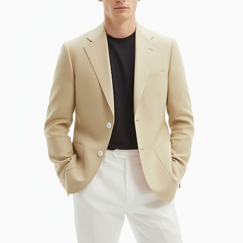 Per uomo Blazer Affari Cocktail party Ricevimento di matrimonio Moda Casual Primavera Autunno Poliestere A righe Tasca Bottoni Confortevole Monopetto Giacca Nero Bianco Giallo Blu