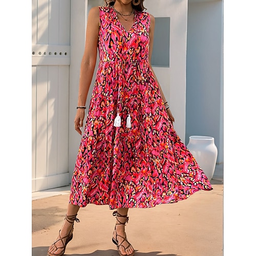 Per donna Abito Midi Vestito Casual Vestito a ruota Abito Floreale Elegante Moda Moderno All'aperto Vacanza Uscire Vestibilità comoda Floreale Senza Maniche Scollo a V Blu Vino Rosso Verde Estate