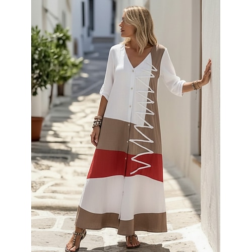 Per donna Abito maxi 100% cotone Vestito a caftano Vestito Casual Essenziale Moderno Quotidiano Weekend Vestibilità comoda Semplice Mezza Manica Scollo a V Nero Blu marino Marrone Verde Estate