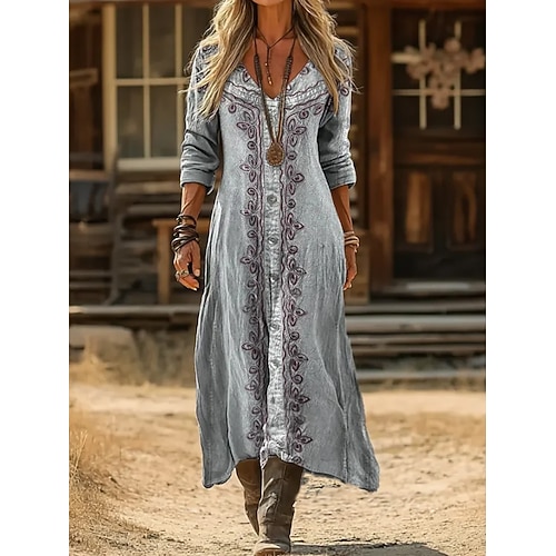 Per donna Abito Midi Vestito Estivo Abito a trapezio Vacanza Casual Boho Uscire Spiaggia Vestibilità comoda Grafico Geometrico Manica Lunga Scollo a V Rosa Blu Viola chiaro Marrone Primavera Autunno