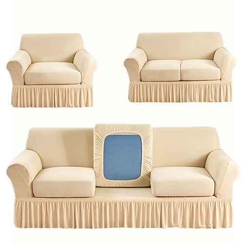 Copridivano elasticizzato con gonna, copridivano elastico tutto compreso, protezione per mobili resistente agli animali domestici, tinta unita