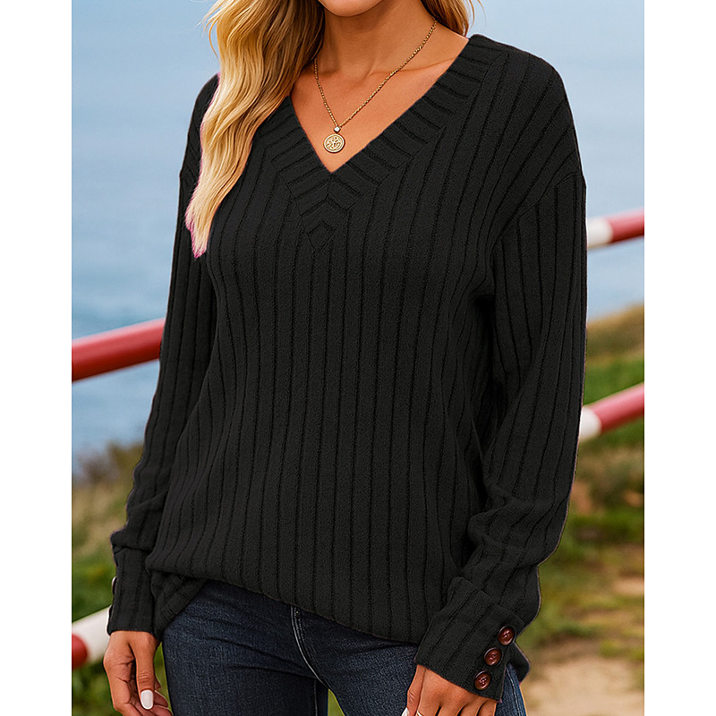 Women's Pullover Sweatshirt Casual Tops Long Sleeve Top Athleisure Fall V Neck Solid Colored Fashion Outdoor Travel Sportswear Activewear Black Green Dark Blue