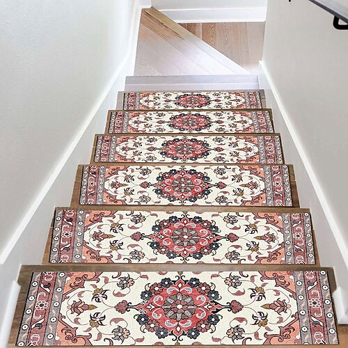 Stufenteppich im Boho-Stil, rutschfester Treppenteppich für Kinder, Senioren und Haustiere, Treppenstufenmatten im ethnischen Design