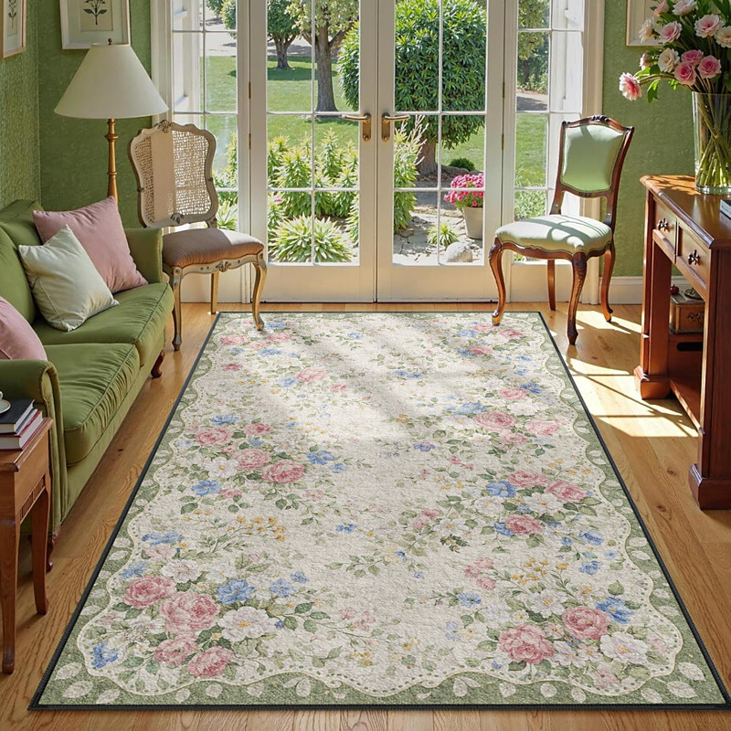 American Vintage Style Area Rug for Living Room, Easy Care Faux Cashmere Carpet, Durable, Soft and Comfortable, Ideal for Home Use, Stylish and Practical Rug