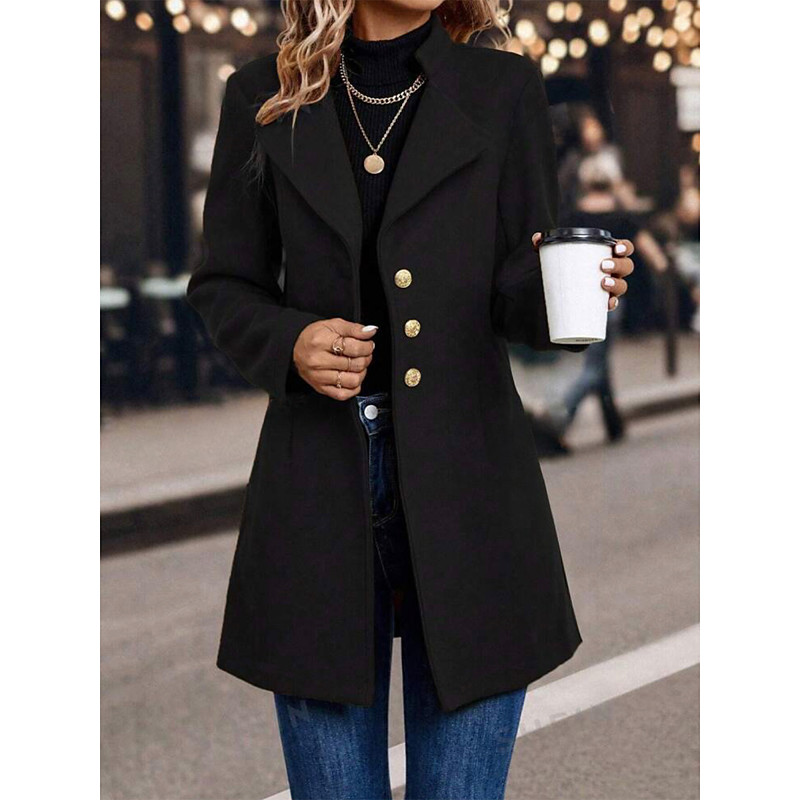 Women's Casual Jacket Comfortable Breathable Pocket Buttons Casual Plain Vacation Office Street Casual Single Breasted Long Lapel Regular Fit Long Sleeve Outerwear Black Yellow Gray Spring Fall
