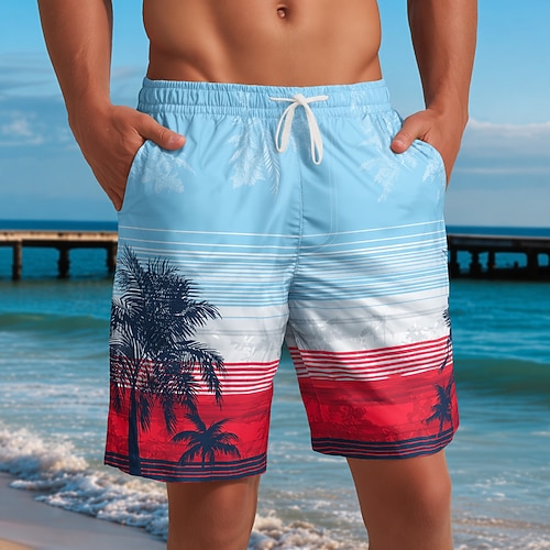Per uomo Albero di Cocco A righe Pantaloncini da mare Pantaloncini da Surf Costume nuoto a pantaloncino Misura del girovita medio Hawaiano Casual Ferie Spiaggia Coulisse con fodera in rete Elastico