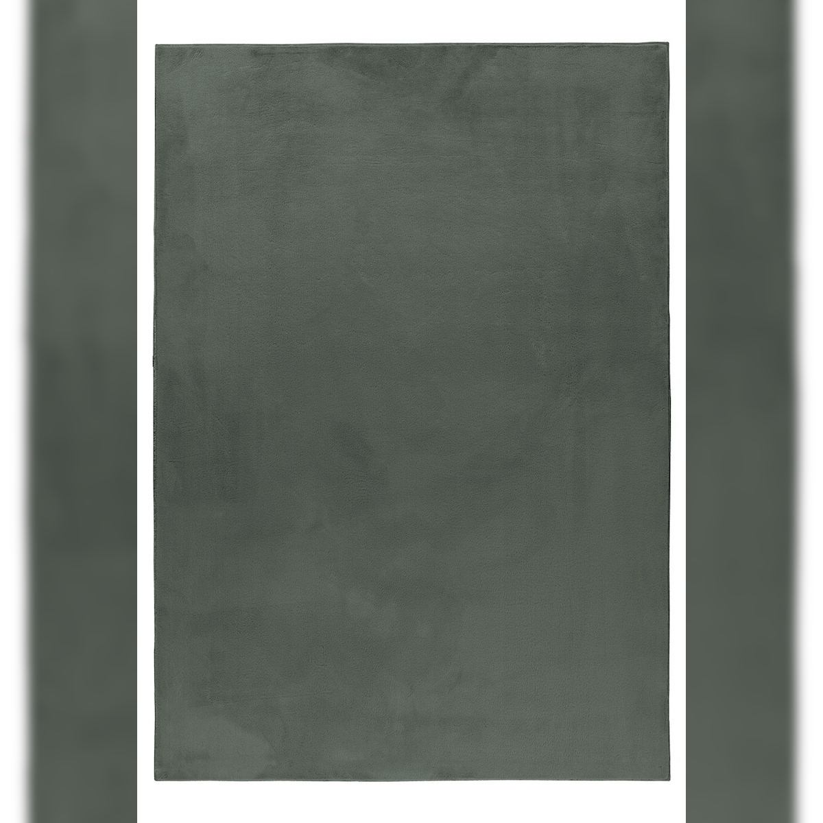 Teppich Kurzflor Uni-Look Polyester Wohnzimmer waschbar Grün Läufer 60x110 | Kadima Design